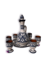 Hand-Painted Ceramic Drink Set (Carafe, 6 Goblets, Tray) – Handmade Oriental/Moroccan Style