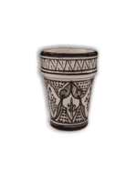 Experience the timeless elegance of Moroccan craftsmanship with this beautiful ceramic beaker. Hand-painted by skilled artisans, it features intricate traditional patterns in a classic black and white palette.