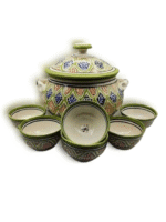 Set Includes: 1 Large Lidded Serving Pot with Handles, 6 Small Bowls