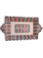 : Plat de service artisanal rectangulaire en céramique, fait et peint à la main. Motifs colorés uniques, bords festonnés et anses pratiques. Parfait pour servir et décorer.
